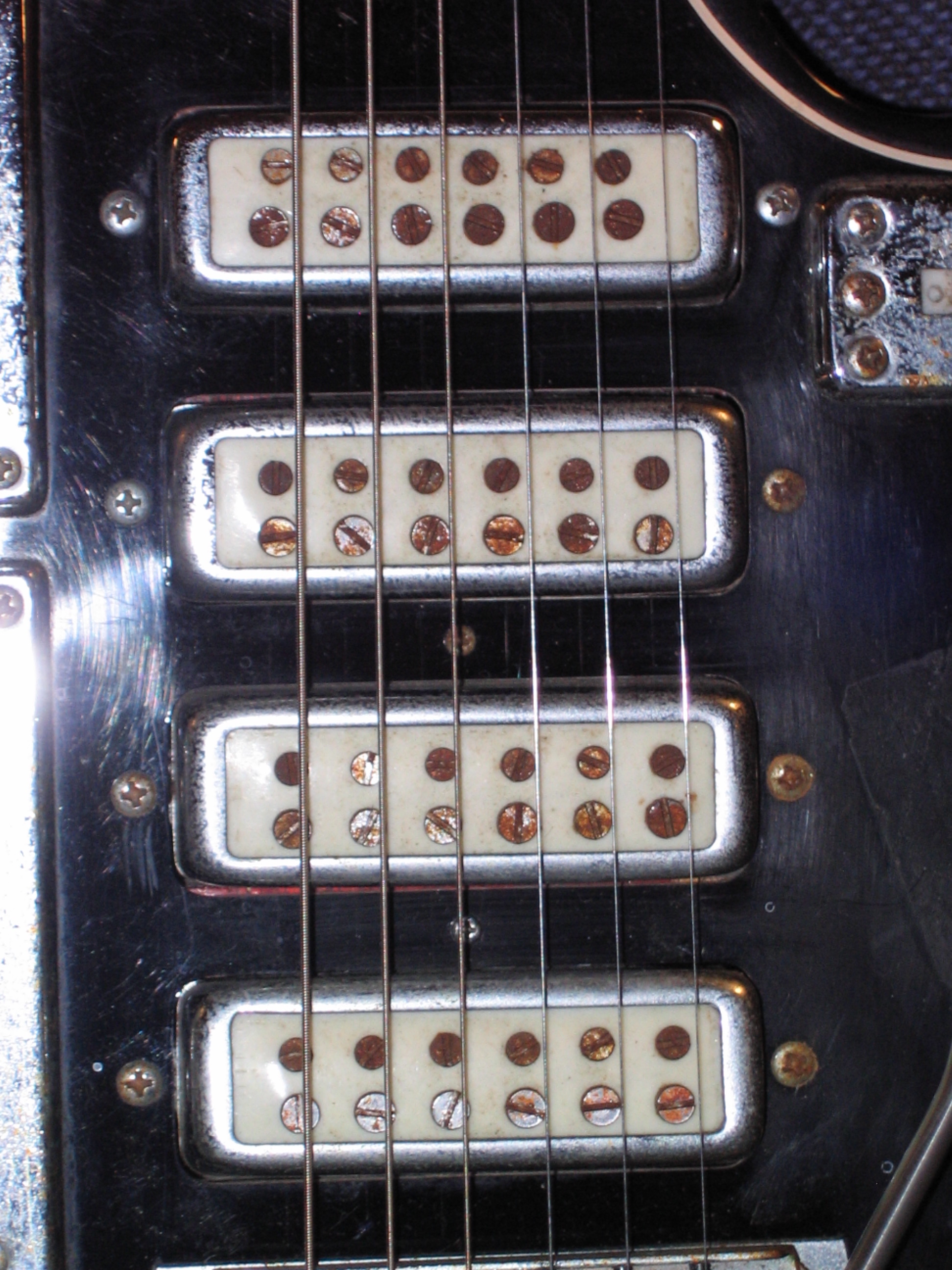 they sounded. They had that typical weak output, somewhere in the 4-5 range, and they were all pretty much microphonic. At least they were height adjustable! - The neck needed a lot of shims to get that proper angle but after a good set-up it played pretty well!