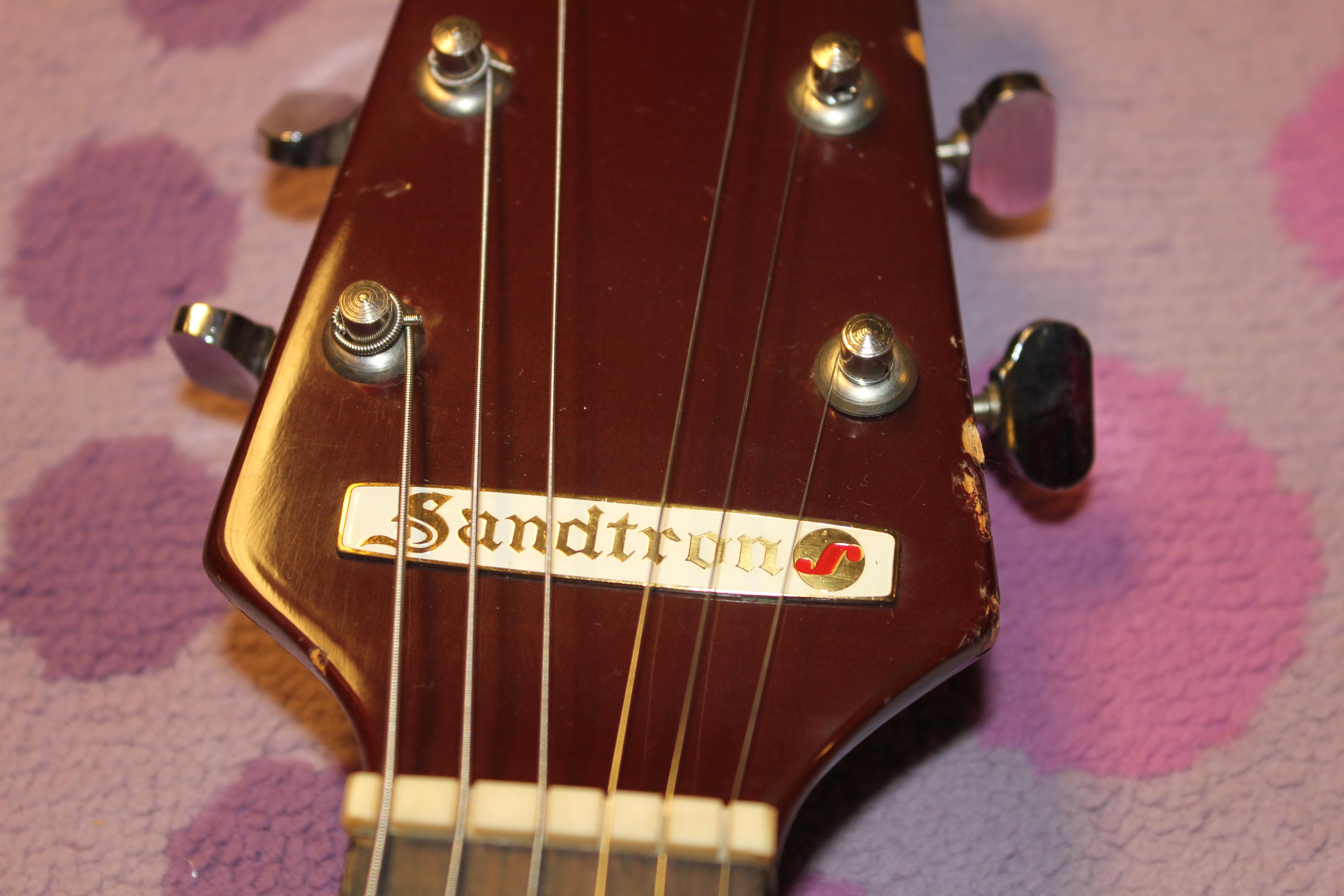 Ive got a sandtron as well. My step grandfather, who is also from Toronto, sold stuff to truck stops and I think he had more than one of them at one time but gave them away. He usually bought things in bulk and sold them. My guitar is in excellent condition other than some chunks of paint missing at the back of the neck. I play left handed and don’t have the patience to play it upside down. I have it mounted on my wall because it looks cool. I may sell it if I got a decent offer for it.