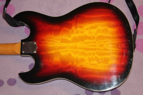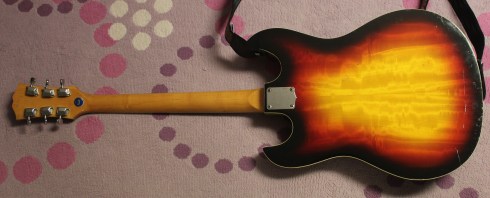 I got one of these for Christams in 1966, I was 12. Looked exactly like the one pictured here. Great looking instrument that didn’t play worth a damn. Worked hard to get it playable, and played it for the next 5 years. Gave it away after picking up a Hagstrom II. If my old friend “Ravi” still has it, I hope he’s taking care of it.