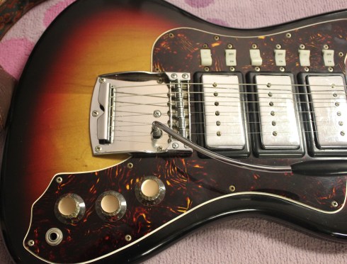 Hi I found your article very interesting as I have just scored a 67′ Supro Strafford .The guitar has the same P/U and bridge configuration as your Lexington. What really bugs me is the very high middle P/U . Do you have ideas on how to lower them past its stock lowest height?