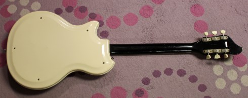 Valco seemed to feel strongly about the durability of guitar finishes (I wonder if this was an early complaint of many guitar players?) because earlier they used a plasticized “no-mar” finish on the wood-bodied Dual Tones. The fiberglass guitars are also described as having a very “durable” finish. Other possible reasons for the fiberglass switch could include its light weight, cheaper cost, and quicker build times. To be honest, I don’t know for sure!! Maybe using fiberglass was just a way to stand out from the crowd?