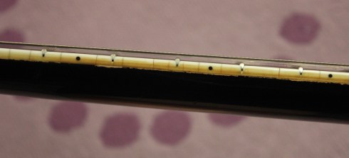 The pickup switching is totally easy and Dano figured out how to flip the pickup magnet polarity so that the in-between setting is hum-cancelling. Sorta cool!! Dano also did a re-fret on this guitar, and did his usual “spiritual” set up and wiring work. The man is like a guitar shaman or something!! If you have a Valco guitar, be sure to send it on down to Happy Guitar Repair, Dano’s the best with vintage Valcos!!