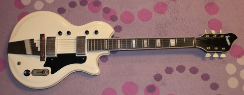 In 1963 the 1524G Dual Tone cost $137.50 and a hard shell case was an extra $45. In 1964 the model number changed to S424 and cost $159.50 with a hard case costing $49.50. Finally in 1965 the price dropped to $149.50 and a hard “flannel” case cost $24.50. Alas, 1965 was the last year for the fabulous Dual Tone as the entire Supro model line went through another transformation and guitars like the Lexington became available in 1966. Of course, my title for this article comes from the descriptions of white finishes for the Dual Tone. They came in either Arctic White, or Ermine White, meaning only white finishes were available!!