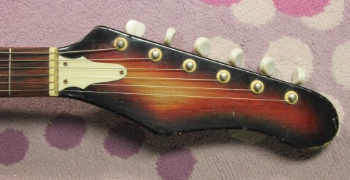 You see, these guitars were some of the very earliest Japanese imports.  In Japan, Guyatone and Teisco had already been building instruments for many years when the guitar boom took over and factories in Japan that had previously made cabinets, shoes, furniture, and violins were pressed into service as guitar makers.  And this is one of the guitars to come out of the multitude of “new” guitar factories.