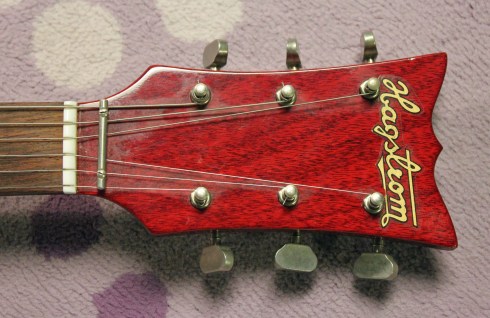 Just look at that dern headstock!  I love it!  These Hags are often compared to Gibson SGs, but really they’re only similar in design.  I really like Gibson guitars, and I really like my SG, but I would never say that owning an SG and an HIIN is redundant.  They really sound different.  My HIIN has this incredibly biting tone, and in the bridge position, it’s like there’s a boost or overdrive circuit in there!  Seriously, this guitar has spank!