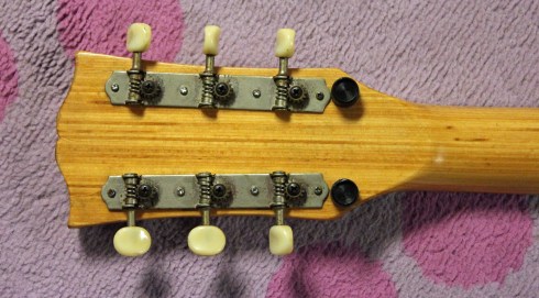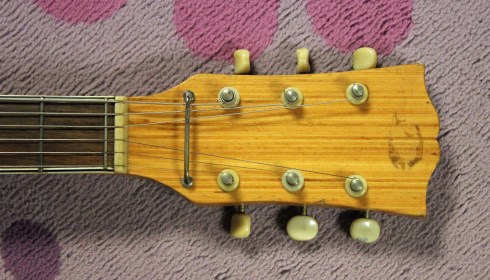 Even those little black plastic “stands” on the back of the headstock were put there so the guitar could be leaned against a wall or amp without rolling away!  So in my mind, it begs the question, why make a guitar like this?  I’m guessing that this was a crossover attempt to appeal to folk and bluegrass sensibilities that were becoming popular in the late 60s.  Then again, who knows!  Once again, the kind folks at Happy Guitar Repair did all the work on this one and got it playable.  And Mike Dugan does all the playing in the video.