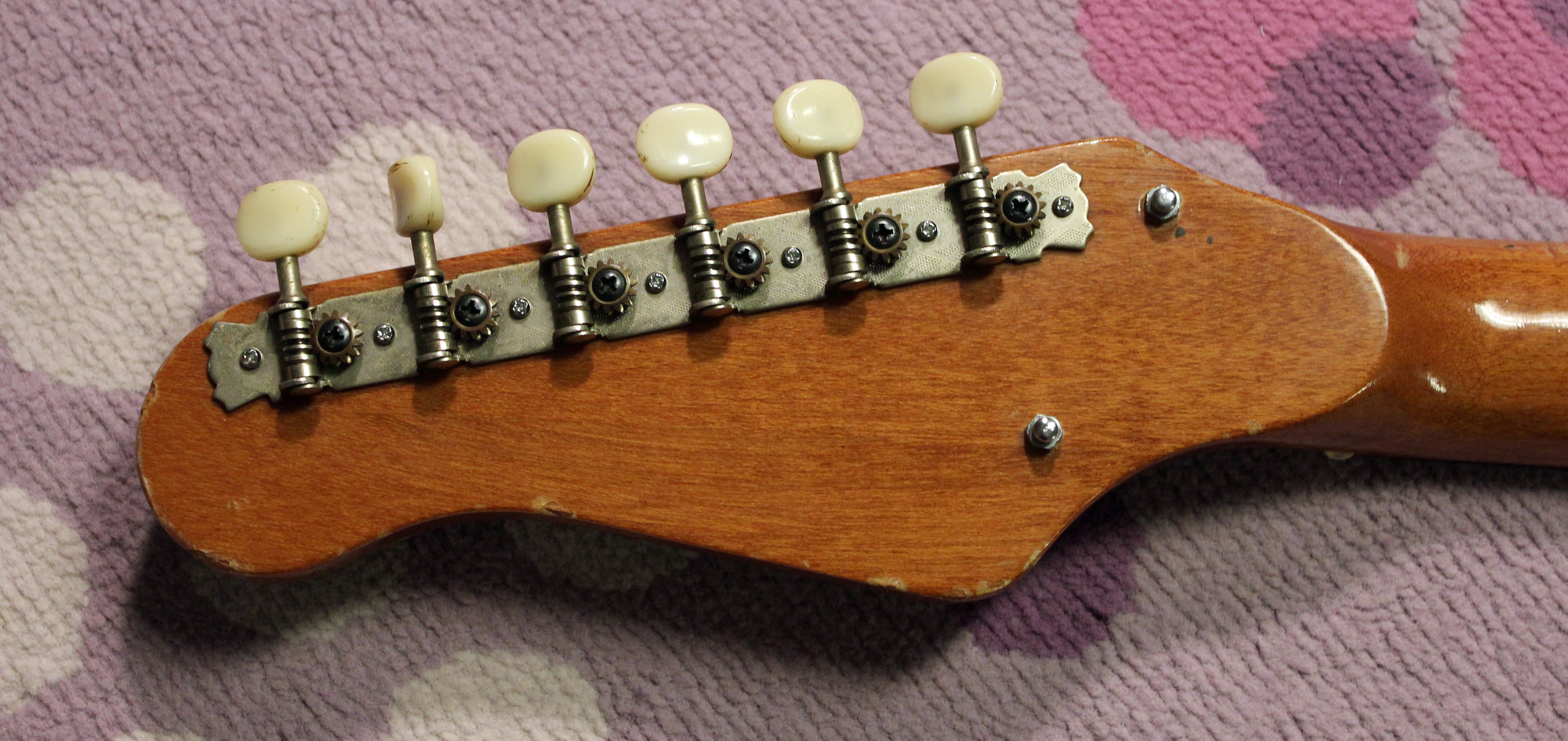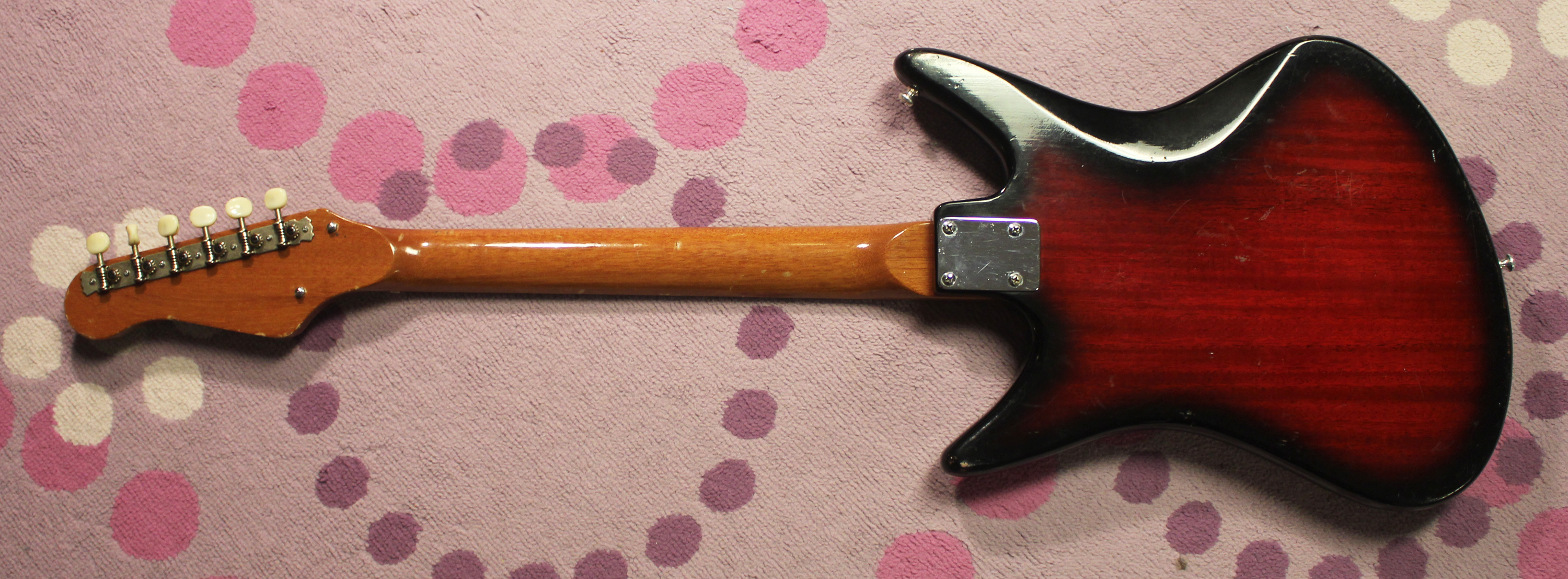 I’ve only ever seen one other of this model, and these were probably produced for a single product run and then left on the shelf for another hip design, vying for the demand of the young mods perusing the Woolworth aisles. In fact, I’ve seen Audition guitars made by many different Japanese guitar manufacturers. So you see, Kawai was competing with other factories as well. Either way, I’m just glad these old rockers still exist, floating around out there like pointy boots and nehru jackets.