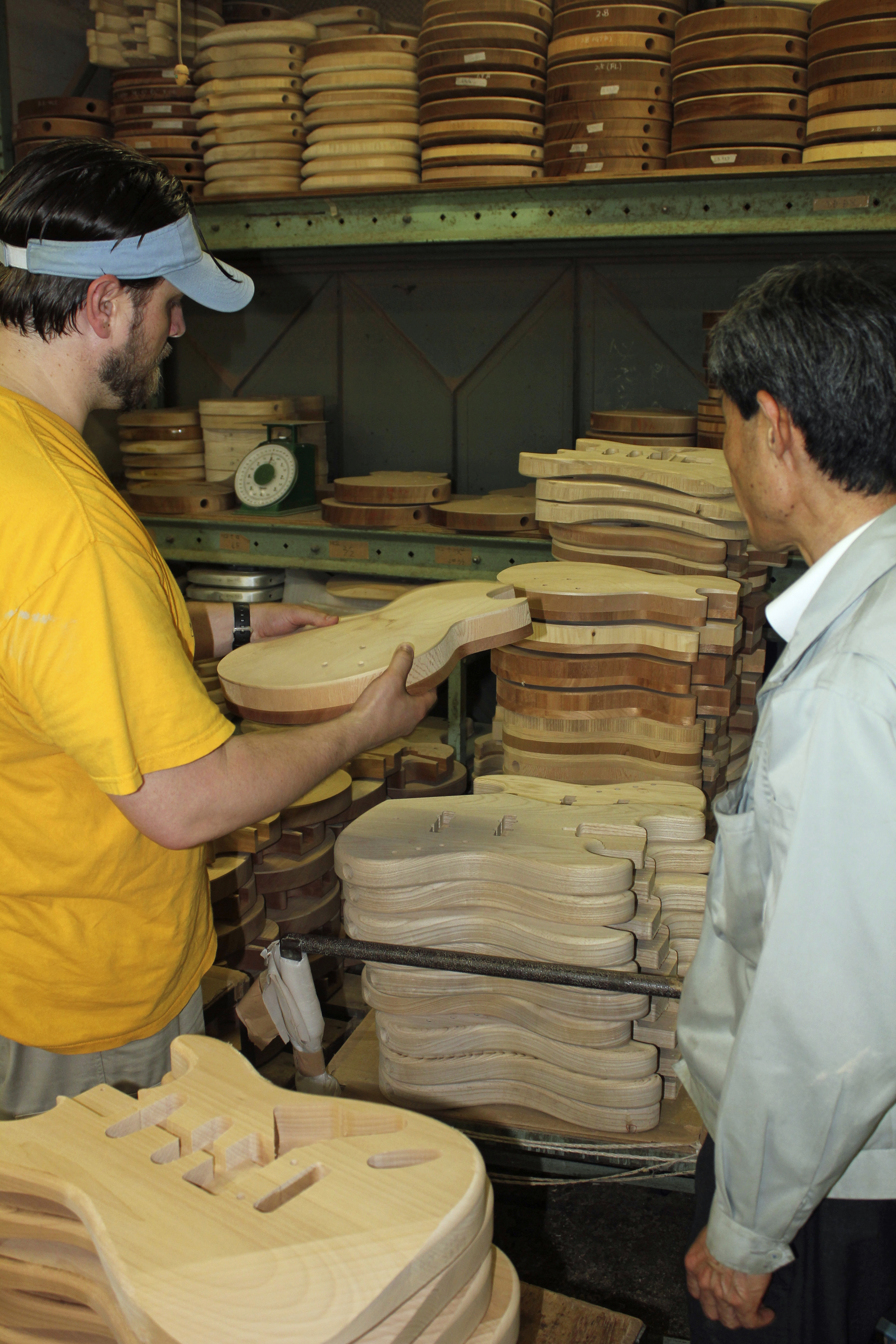 There’s the company president, Shohei Adachi, showing me how they’ve experimented and perfected the SEB process. They’ve also examined the properties of the various tone-woods and how it all relates to their SEB technique.